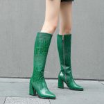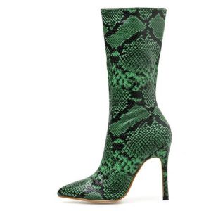 Stylish Green Snake Print Boots
